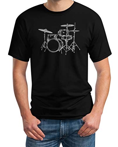 Shirtgeil Regalo per Batterista Fantastica Stampa di Batteria Maglietta da Uomo XXX-Large Nero
