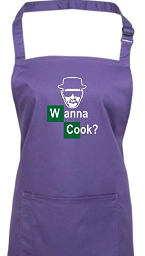 Shirtstown Grembiule da Cucina, Breaking Bagno Bianco Cook Wanna Cook, Chimica Walter, Culto - Viola, 72 cm x 86 cm