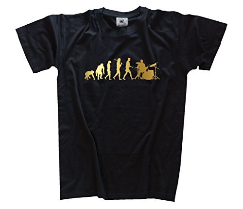 ShirtZShop Maglietta Gold Edition Drummer Batterista Evolution, Unisex, T-Shirt Gold Edition Drummer Schlagzeuger Evolution, Nero, M