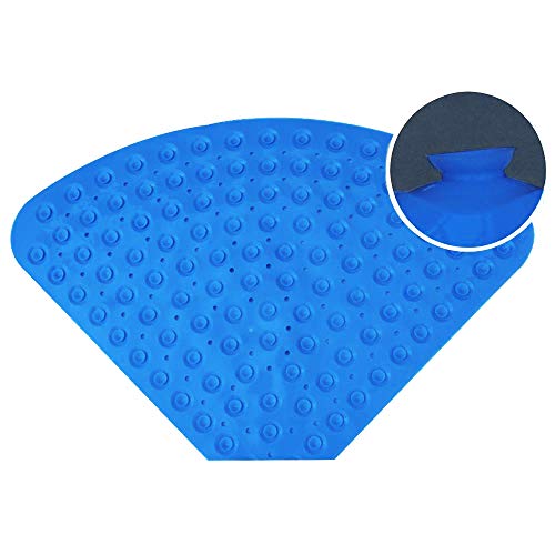 Shirylzee - Tappetino triangolare per vasca da bagno, antiscivolo e antimuffa, con foro di scarico per piatto doccia o vasca, PVC, Blue, small