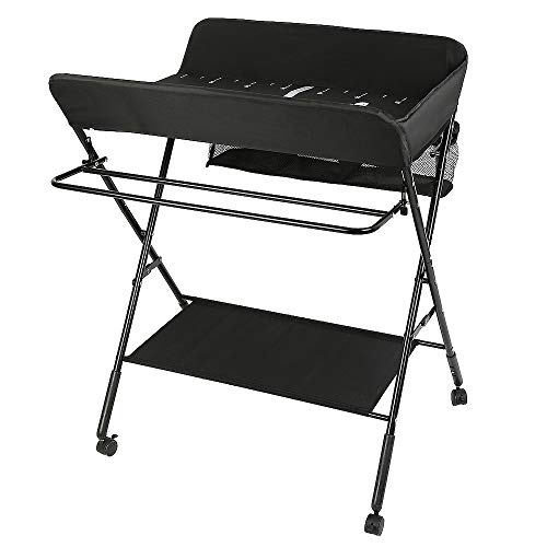 SHISHI Fasciatoio Portatile Pieghevole con Ripiano, Fasciatoio da Tavolo a Ruote, Fasciatoio Materassino Impermeabile e Lavabile, Regolabile in Altezza 92-98 cm, Protegge la Vita (Nero)