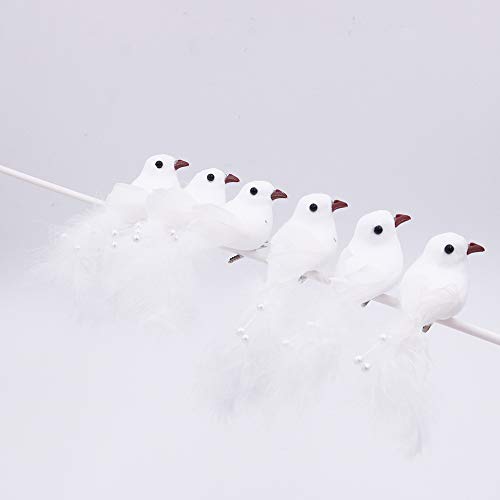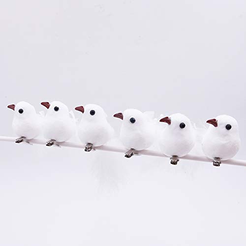 Shiwaki 12pcs Uccelli di Colomba di Natale Artificiali Clip su Ornamenti per Alberi Ornamenti di Uccelli con Piume bianche Artigianato Fai-da-Te per Decorazioni per Matrimoni Accessori per Feste