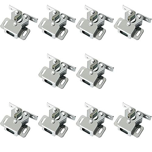 Shiwaki 10 PCS Cabinet Door Catch Double Roller Catch Cabinet Latches, Cabinet Rollers for Cabinet Cabinet Door (Zinco Bianco)
