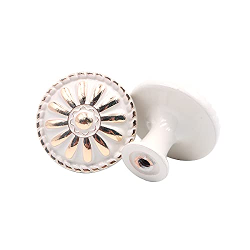 Shiwaki confezione da 4 pomelli,maniglia tonda per cassettiera vintage per cassettiera per armadio in legno porta per mobili motivo floreale (bianco)