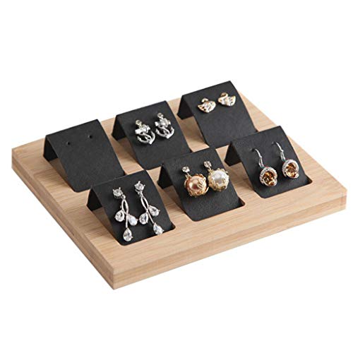Shiwaki Espositore per Gioielli in Legno con Vassoio per Orecchini E Cuffie/Organizzatore per Gioielli E Presentazione - 6 Paia di Neri, Come descritto