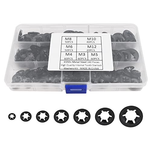 Shiwaki 340 pezzi Rondelle, guarnizione foro torx Rondelle a bloccaggio rapido Rondelle di velocità Fermo del cuscinetto Elementi di fissaggio M3 M4 M5 M6 M8 M10 M12