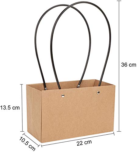 Shiwaki 5 pezzi sacchetti regalo fiori di carta kraft scatola di sacchetti per bouquet sacchetti di carta marrone impermeabile con manico borse di tela per bomboniere per feste di compleanno - marrone