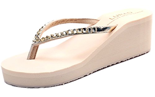 ShiYuan Ciabatte da donna con plateau e zeppa, sandali estivi da spiaggia, bianco, 39 EU