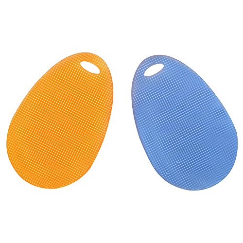 Shizak Spugna/spazzola multiuso in silicone per la pulizia di piatti, frutta,verdura, tappetino resistente al calore,guanti blue&orange