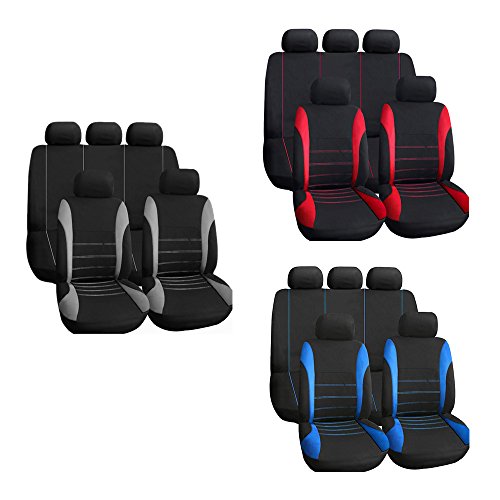 Shkalacar Coprisedili per Auto,Set Copri-Sedile Universali per Anteriori e Posteriori,Accessori per Interni Auto, Set Completo di 9 Pezzi Cuscino per Seggiolino Auto Stile Sportivo, Nero/Grigio