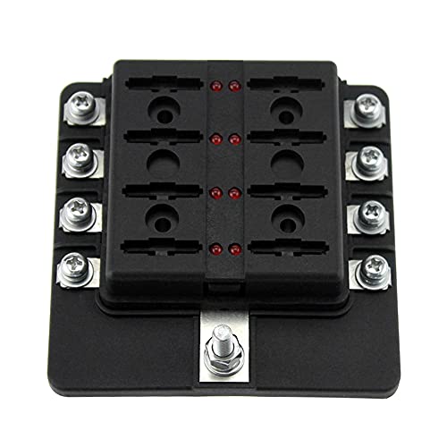 Shkalacar Fusibili a Scatola a 8 Vie con portafusibili Fusibili con indicatore LED 10Pcs Fusibili Terminali con connettore da 10 Pezzi per Camion per Auto Marine Caravan 12v 24V