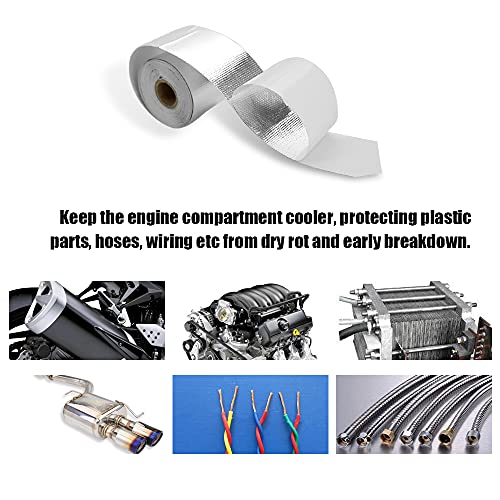 Shkalacar Nastro Scudo Termico Resistente del Rullo Termico di Scarico, 5m, Cintura in Fibra di Vetro Ignifuga Riflettente Leggera, Fascia Isolante Termica per Moto Auto, Argento