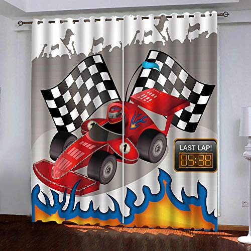 Shkdif Tende Oscuranti 3D Cartoon Racing Car,Tende Oscuranti Termiche Cameretta Chiaro Decorativi Finestra Balcone per Cameretta dei Bambini