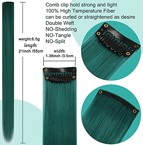 SHKJCHP Clip per extension per capelli colorati Accessori per ragazze 55cm Pezzi per capelli lisci lunghi 12 pezzi (blu, verde acqua)