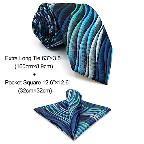 Shlax&Wing Cravatta da uomo Ripple Blu Multicolore Seta Verde Lungo 160cm Seta
