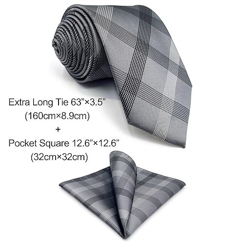 S1 Shlax&Wing Size Checked Grigio Cravatta da uomo 100% Seta