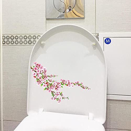 SHMAZ Adesivo per WC Adesivo Decorativo Adesivi Murali Decorazioni per La Casa Toilette Ramo di Fiori di Pesco Rosa Freschi