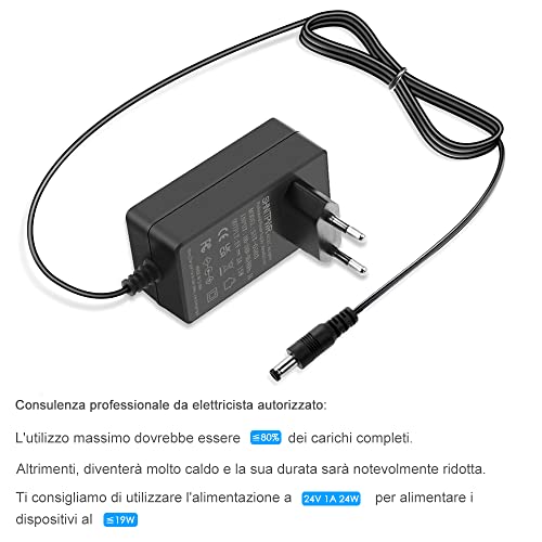 Compatibile: strisce LED, illuminazione per armadi, robot aspirapolvere, radio, Speedport, strisce luminose, stampanti di etichetta, hub USB, switch, router WiFi, mini TV, strisce LED, router wireless, hard disk esterno, modelli ADSL, interruttore, telecamere di sicurezza, alimentatore audio/video, ecc. e altri dispositivi elettronici da 24 V sotto 24 W.