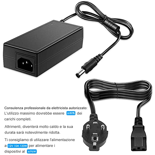 SHNITPWR Alimentatore di rete da 12 V AC 100 V ~ 240 V fino a DC 12 V 10 A 120 W trasformatore di tensione LED trasformatore trasformatore alimentazione 5.5 x 2.5 mm spina per strisce LED