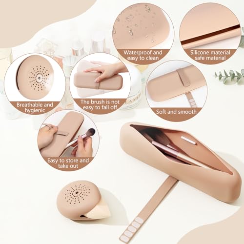 Shockassist 2 Pezzi Porta Pennelli Make Up da Viaggio 1 Pezzi Porta Pennelli Silicone +1 Pezzi porta beauty blender Adatto per pennelli, rossetti, eyeliner, spugnette di bellezza (Cachi)