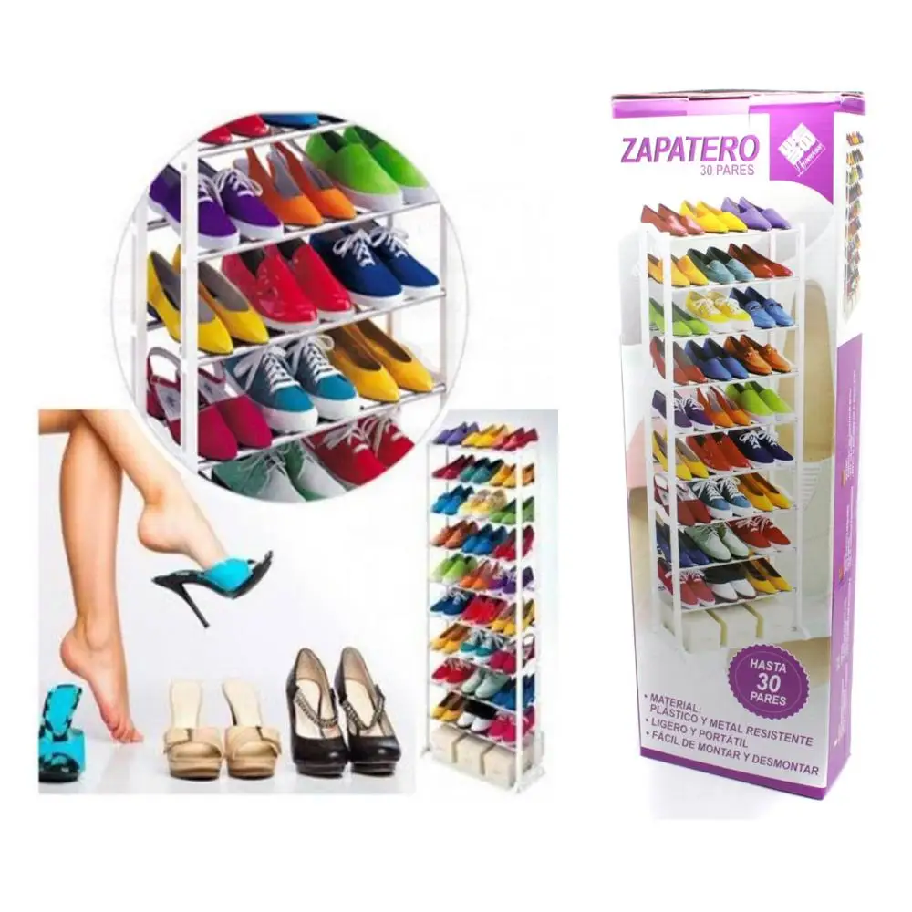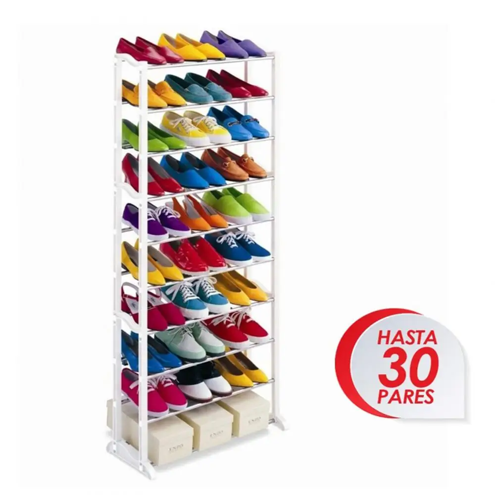 Shoe rack, plastic material, balanced, does not take up 10 baldas up to 30 pairs. Height 1.35cm Width 50cm.