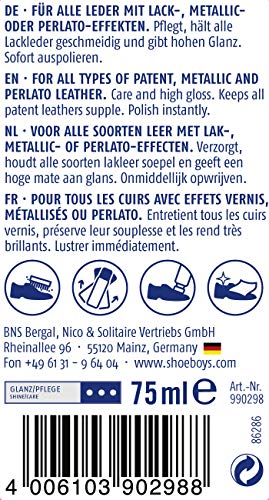 Nutrimento intenso e lucentezza per tutti i tipi di pelle verniciata, metallica e perlata.