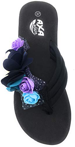 AXA SHOES Infradito Donna Moda Fiori-Colore Nero-Numero 38
