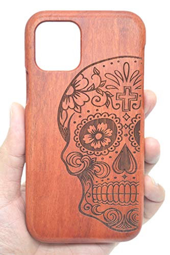 Shogpon Cassa di Legno per iPhone 11, qualit à Premium Cover Custodia in Hard Case in Legno Naturale Design Antiurto Antiscivolo - Cranio Palissandro