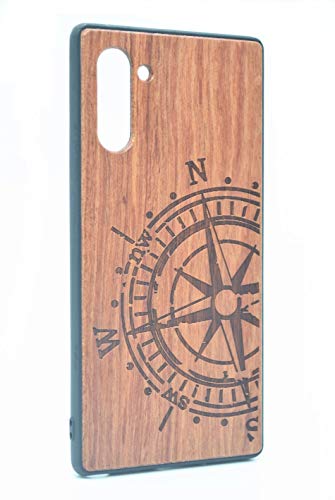 Shogpon Cover di Scultura in Legno per Samsung Galaxy Note 10, Custodia in TPU Hard Case in Legno Naturale Design Antiurto Antiscivolo - Bussola Palissandro