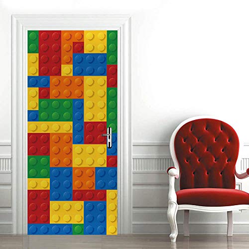 SHOMEY Adesivo per porte Puzzle di Lego 80 x 210 cm PVC Autoadesivo Porta murale vinile HD stampa Applique Porta a muro decorazione famiglia camera da letto