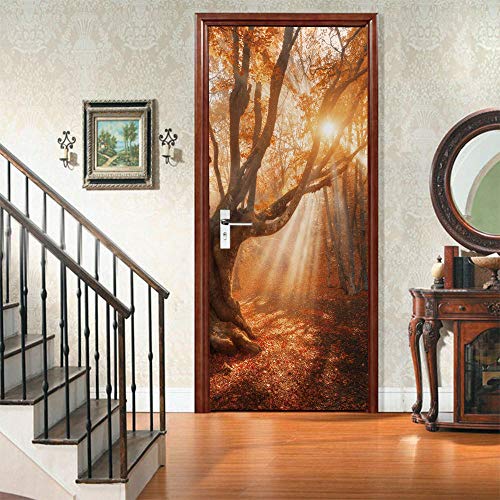 SHOMEY Carta da parati 3d per porte, Bosco autunnale 90 x 200 cm PVC impermeabile autoadesivo buccia e bastone Murales porte stickers porta, adesivi per porte interne bagno