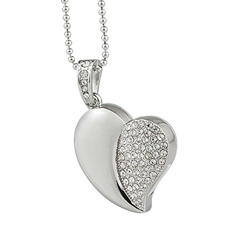 Shooo 8GB Rhinestone Metallo Heart Chiavetta USB, Fashion Jewelry Bling Shiny Crystal Diamond pendant,with Collana