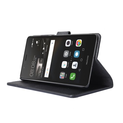 THE FLY SHOP - Cover per Huawei P9 Lite/Custodia protettiva a libro in pelle sintetica nera martellata con tasche interne per carte di credito
