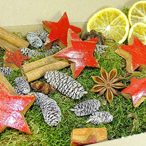 MGS SHOP Deko, Set di decorazioni natalizie, idee creative, decorazioni naturali, con muschio, anice, cannella, rondella d'arancia, stella di cocco