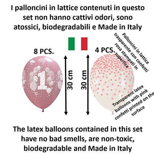 Shopama Palloncini Decorazioni 1 Primo Compleanno 1 Anno Bambina Elio Bimba Rosa Cuore Fucsia Happy Birthday 30 Pezzi