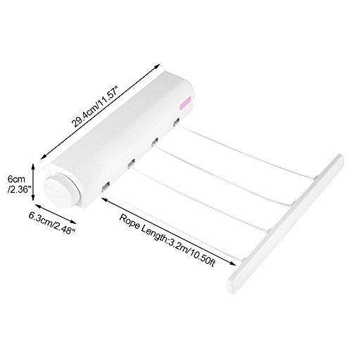 Shoplic Asciugatrice retrattile - 3,2 m asciugatrice retrattile 4 linee asciugatrice da parete interna per linea di lavanderia