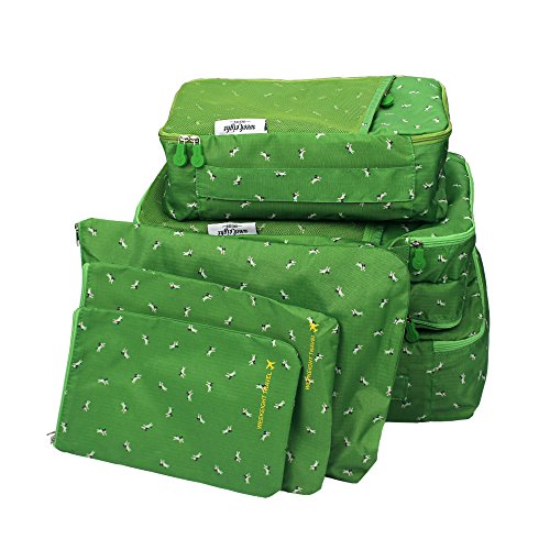 Shopper Joy 6 Pezzi Organizer per Valigie Organizzatore dei Bagagli da Viaggio 3 Cubi di Imballaggio 3 Borse per il Viaggio in Campeggio - Verde + Cani