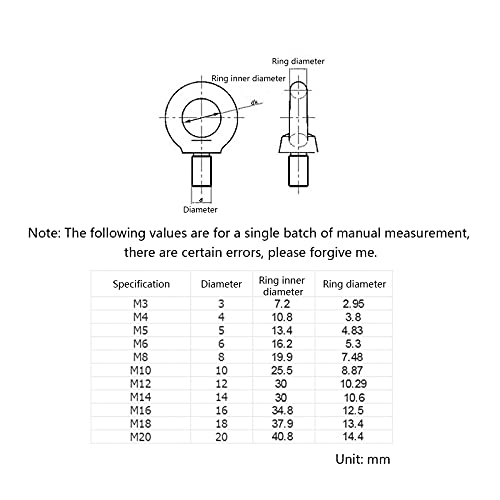SHOUCAN Bullone A Vite in Acciaio Inossidabile 304 M18/M20/M24 Anello di Sollevamento Bullone A Occhiello Adatto per Applicazioni Leggere per Interni Ed Esterni,M18×50mm