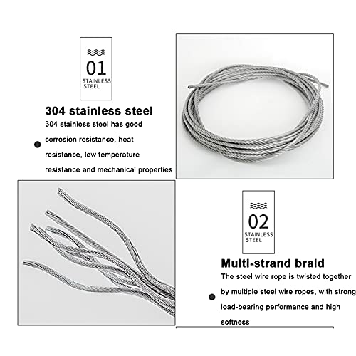Materiale del prodotto: cavo in acciaio inossidabile 304 durevole - realizzato con cavo in acciaio con anima di costruzione 7x7, antiruggine, resistente alla corrosione, resistente all'usura.