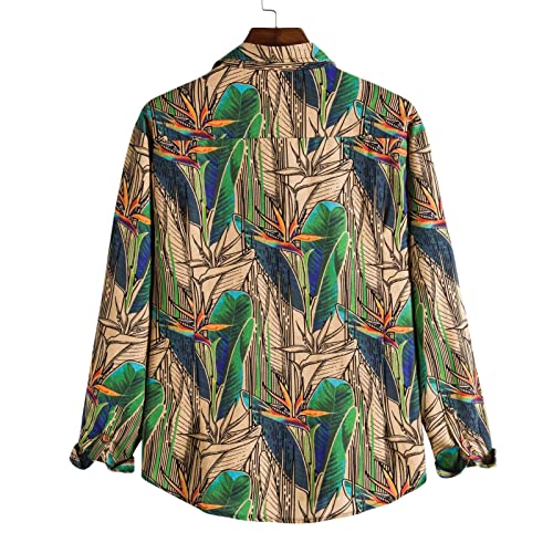 SHOUJIQQ Camicia A Maniche Lunghe da Uomo Taglie Forti - Stile Etnico Stampa Paisley Vegetale Camicia Hawaiana Aloha, Camicetta Slim Fit con Risvolto Camicie Eleganti da Uomo Top Vestiti,Verde,Grande