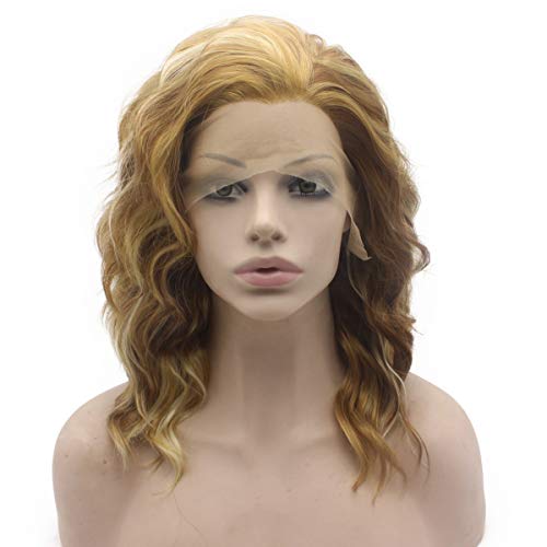 Shoulder Length Curly Lace Front Blonde Ombre Wig