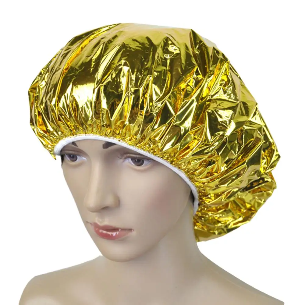Shower Cap Heat Insulation Aluminum Foil Hat Elastic Bathing Cap for Women Hair Salon Bathroom