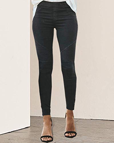 Shownicer Donna Pantaloni Sport Jeans a Vita Alta Skinny Elastico Denim Pantaloni Jeans Leggings Pantalone a Matita Casuale B Nero XS