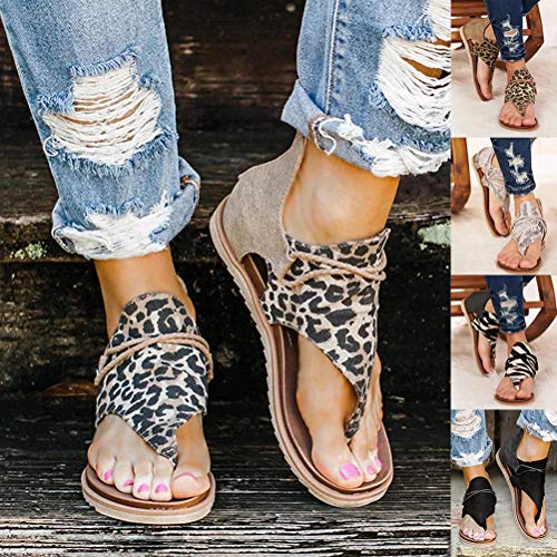 Shownicer Sandali da Donna Sandali Piatti Leopardo Stampa Sandali Casual Peep Toe Estate Pizzo Up Stampa Sandali Piatti Zebra 35 EU