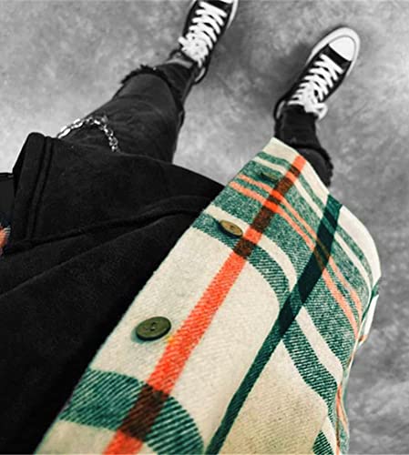 Shownicer Uomo Camicie A Quadri Casual Flanella vestibilità Regolare Maniche Lunghe Bottone Camicia Giacca da Boscaiolo Giacca da Lavoro Slim Fit Shirt E Arancia XS