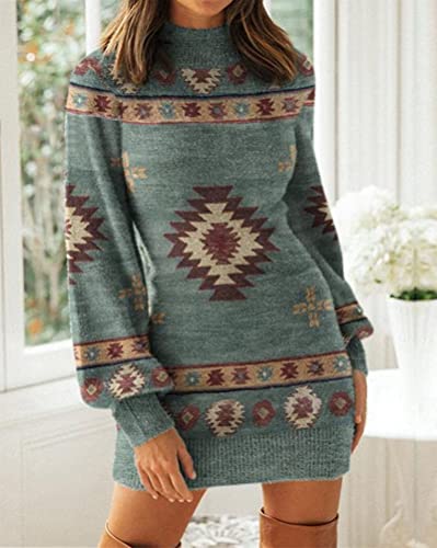 Shownicer Vestito Donna Invernale in Maglione Collo Alto Abito Casual Elegante di Vita Alta Avvolta di Orlo Floreale Tubino Lungo Aderente in Maglia Caldo Verde XL