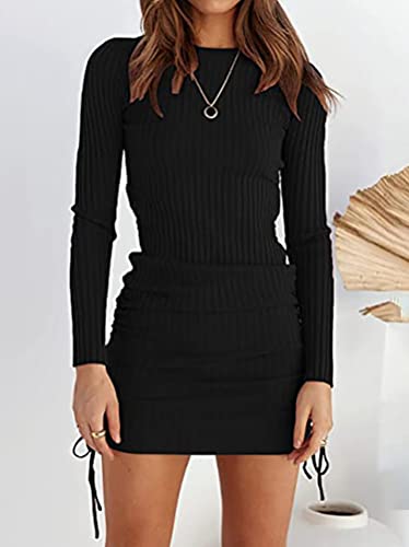Shownicer Vestito da Festa da Donna Corto per l'inverno Elegante in Maglia con Scollo a V con Chiusura Lampo Slim Fit Mini Abito Corto Nero M