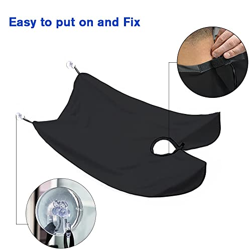 Showvigor Grembiule da Barba per Uomo, Mantello da Barba Impermeabile per Taglio di Capelli Uomo Acchiappacapelli per Rasatura Accessori per Toelettatura con 2 Ventose,Regalo per Uomo,Nero