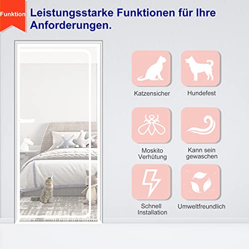 Facile da installare: non sono necessari attrezzi. Basta rimuovere il retro autoadesivo dalle strisce in velcro e applicarlo sul telaio della porta. È possibile premere le penne per fissare lo schermo al suo posto. Inoltre, può essere facilmente rimosso senza danneggiare il telaio della porta.