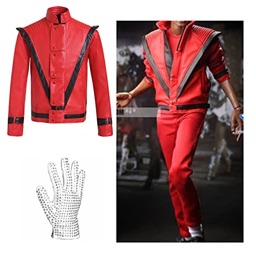 Giacca in pelle MJ "Beat it"Thriller di alta qualità con una piacevole sensazione morbida e una vestibilità perfetta, ottima fattura, alta qualità! ( giacca rossa in pelle Thriller su misura e guanti Billie Jean gratuiti)